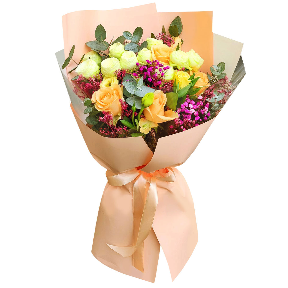 | Состав | Гипсофила, Кустовые розы, Розы, Эвкалипт |