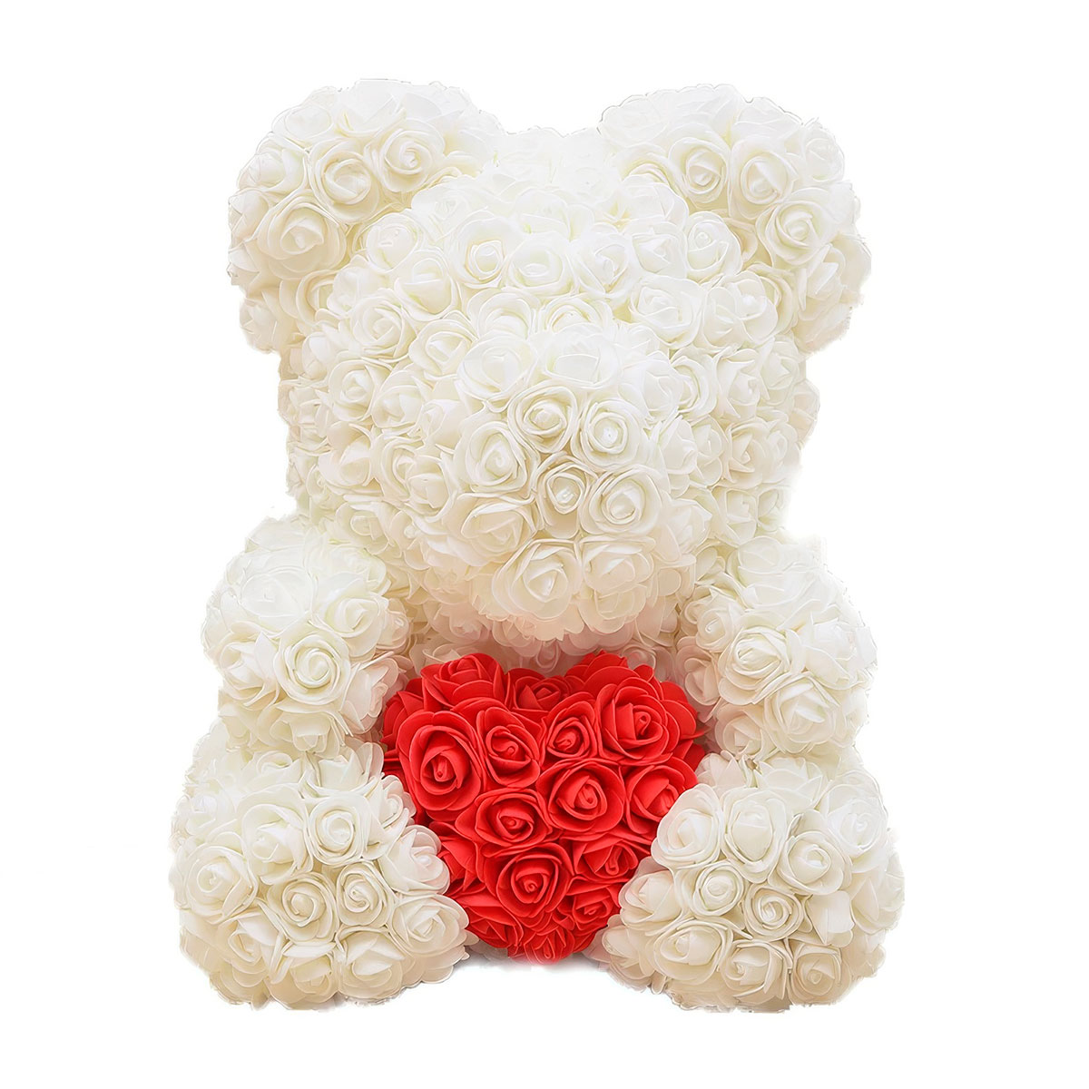 Мишка из роз бежевый с красным сердцем (40 см) с доставкой по г Заречный: вы можете заказать подарок в интернет магазине «Флормания» по цене за 3990 руб.