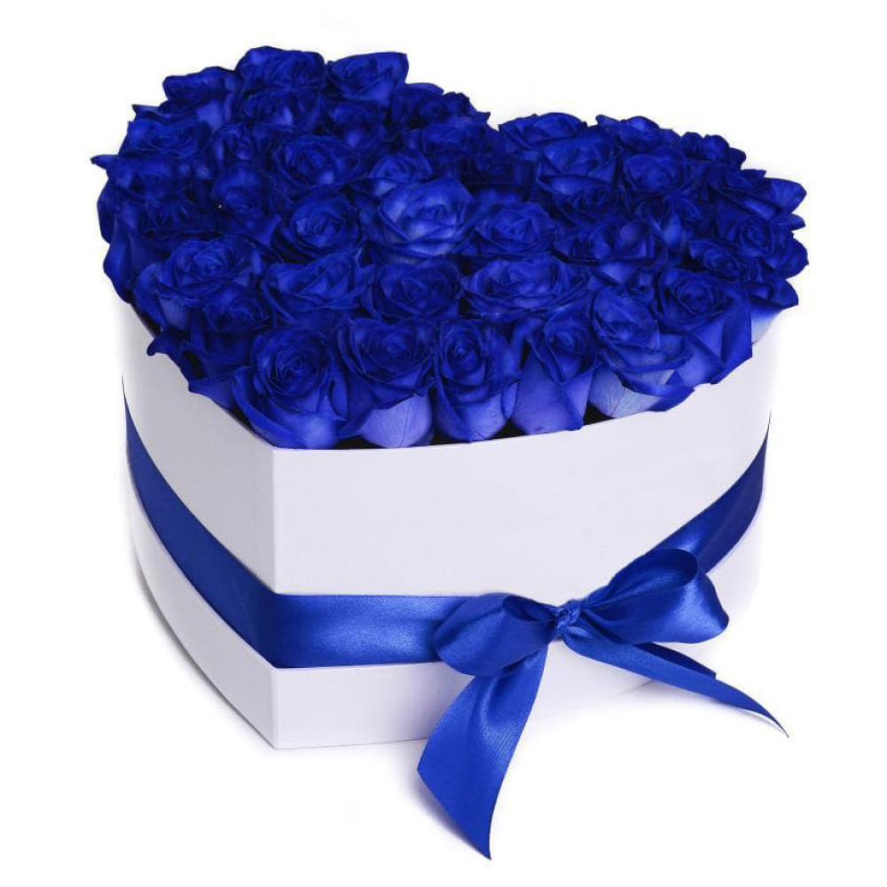 Цветы в коробке «Синее сердце» с доставкой по г Заречный: вы можете купить букет в интернет-салоне цветов «Флормания» по цене от 3190 руб.