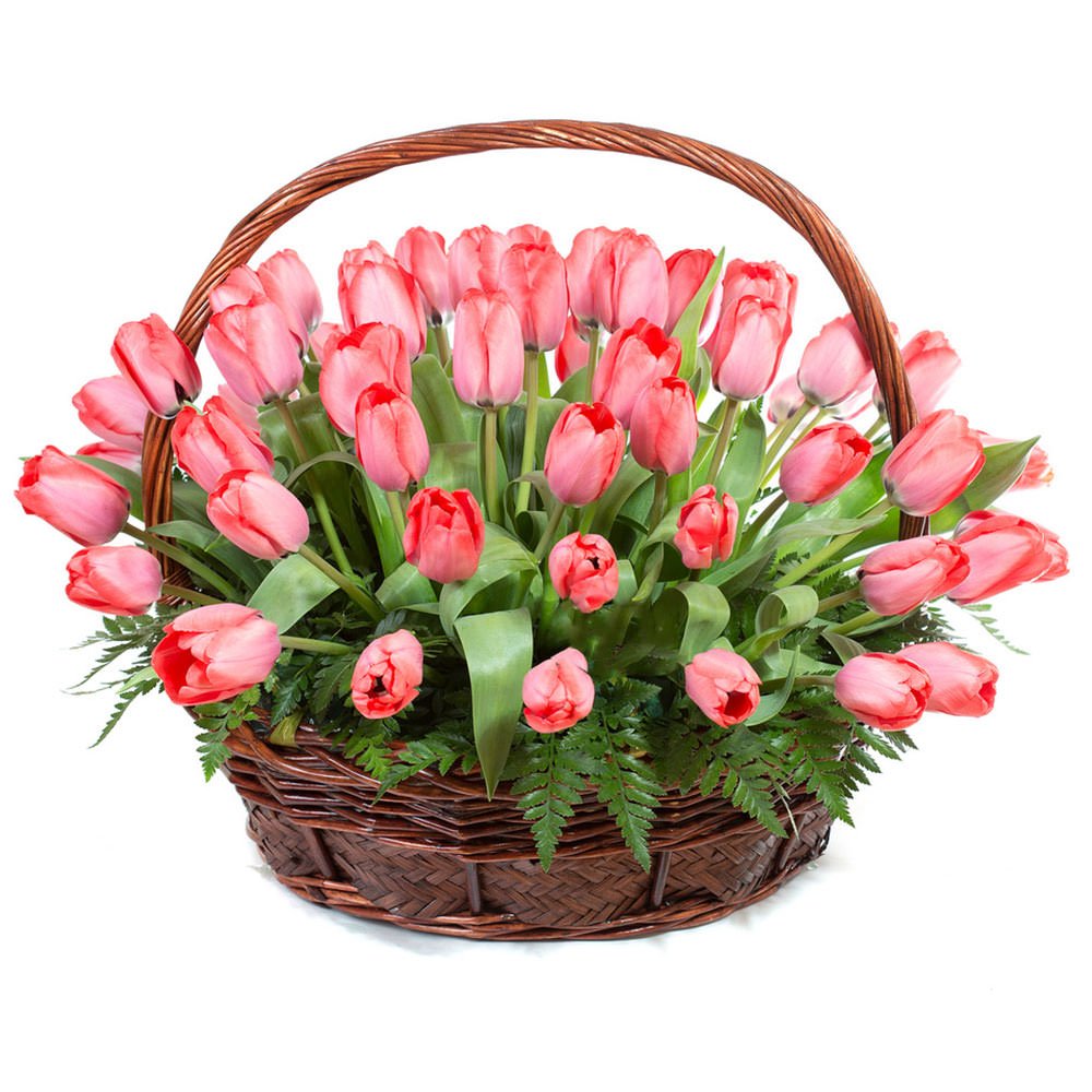 Цветы в корзинке «Розовые тюльпаны» с доставкой по г Заречный: вы можете заказать букет в супермаркете цветов «Флормания» по цене от 3490 руб.