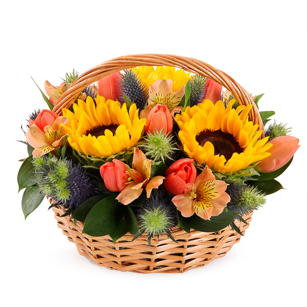 Цветы в корзинке «Солнечный день» с доставкой по г Заречный: вы можете заказать букет в цветочном супермаркете «Флормания» по цене от 3490 руб.